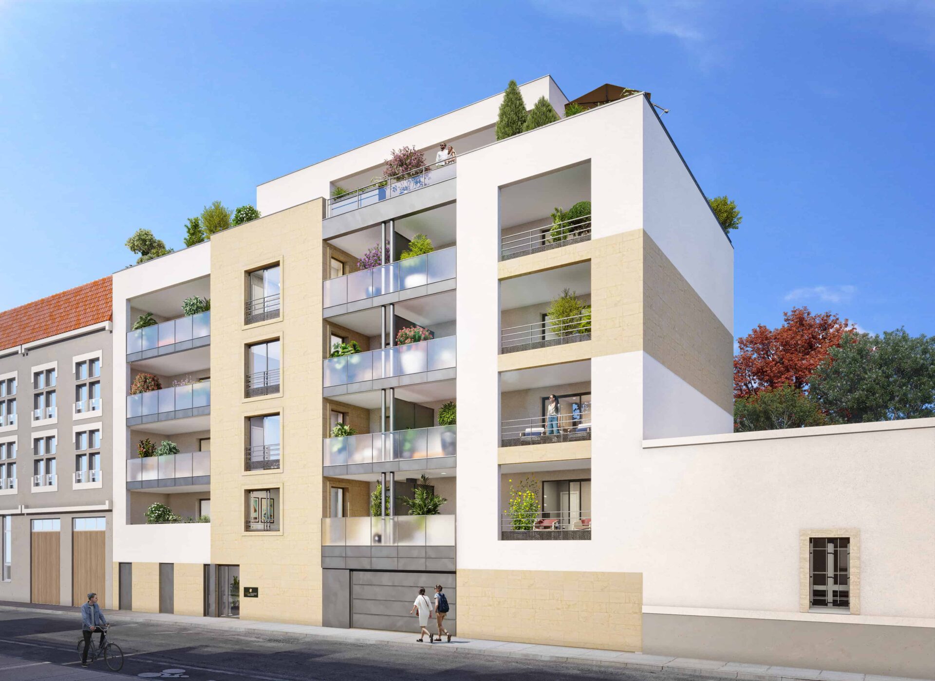 Allant du 1er au 5ème étage avec attique, chaque appartement peut être accompagné d’un balcon, d’une loggia ou d’une terrasse ouverte et lumineuse au sud-ouest.